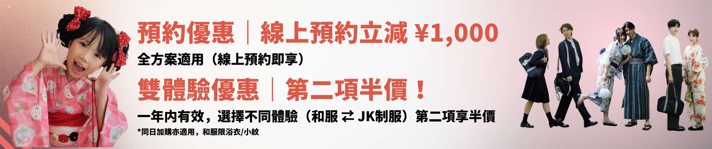 官網線上預約即可享有 1,000日圓 折扣,且可與其他優惠併用。